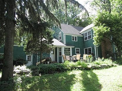 Classic Center hall Colonial on 3 acres + small pond, quiet country rd, 4BR, 2 full and 2 1/2 BA's, Lg FR w/ brick FP-wet bar, slider to blue stone patio, E-I kitchen + desk, many bay windows, hardwood floors most 1st and 2nd flrs, crown molding, c-vac, master BR w/ walk-in closet, dbl sink, possible suite/bonus rm w 1/2 bath-plumbed for shower, 1st flr laundry rm + utility sink, newer roof, sunny rooms, attached 2 car garage w/ basement access, lovely level property-well landscaped, some mature shade trees, EZ access to horse trails