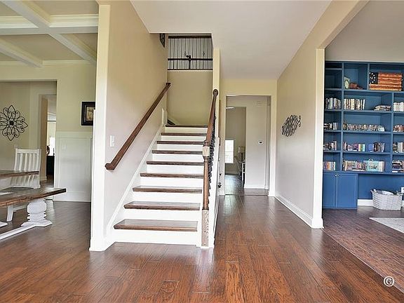 This expansive, 6bd/5ba, 5,795 SqFt, home located in Bradley Landing is one-of-a-kind. The living space spans across 3-stories & sits on a 1 AC lot! Upon entry into the grand 2-story foyer, on the right is the library w/ custom built-ins & to the left is the dining room complete w/ coffered ceilings. 2-stories of windows light the great room. Entry to the eat-in kitchen flanks the 2-story wood burning fireplace. The kitchen has granite countertops, SS appliances, island/bar & walk-in pantry. Large guest bd & full bath located on main floor. The master suite, 3bd, 2ba, laundry rm, loft & balcony access are located on 2nd floor. Master bath w/ 6 ft soaking tub, newly tiled shower, & a massive walk-in closet. Final bd, bath, & bonus rm are found on the 3rd floor, in addition to a fully equipped in-home movie theatre. Everything on the 3rd floor will pass w/ the sale of the property. Deck, storage shed, fenced backyard, 3-car garage. List of theatre equipment specs in attached docs. 1ac lot, 5795 SqFt, fenced yard, & 3 car garage. Floor 1: library, dining, great room, kitchen, walk-in pantry 1 guest bed, and 1 bath. Floor 2: 3 guest beds, 2 full baths, master bedroom, master bathroom, loft, walk-out to balcony. floor 3: 1 guest room, 1 bonus room, 1 full bath, full home theater. Voluntary HOA