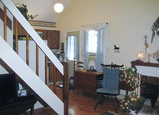 Are you looking for the perfect home less than a mile from the highway yet in a quiet neighborhood? A town home with an open floor plan, spacious yard but NO CONDO FEES? You have found it! Well-maintained, bright cape style home features new laminate wood floors, fireplace, first floor laundry and cozy kitchen nook . Generous master bedroom has space for large bedroom set and desk - complete with a walk-in closet. The second floor loft style bedroom with new carpet could also be used for a home office or den. Additional updates include newer roof & a walk-in shower with seat .Your deck overlooks a nearly 3/4 acre lot - perfect for entertaining. Storage areas include cement basement crawl space with bulkhead access and shed. All appliances including refrigerator, stacked washer/dryer and 2 wall A/C units! Minutes to shopping, restaurants, library, medical facilities, downtown & the waterfront. Perfect starter home or for down sizers. Don't hesitate - this won't last!