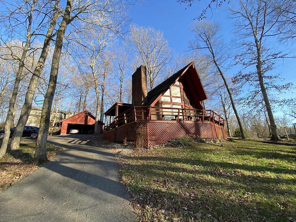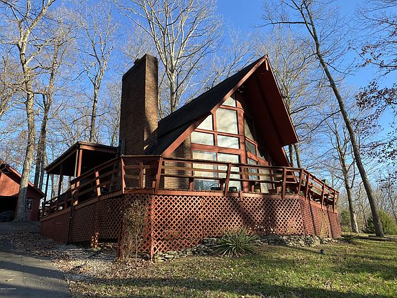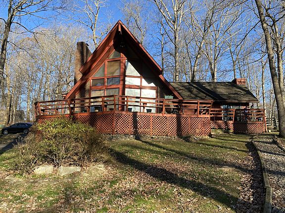 Located near the back gate, you do not want to miss out on this unique A-frame style home! This home has a LARGE great room, perfect for entertaining and seasonal views of the lake. Nestled in a private gated community that offers a pool, a lake with two beaches, a clubhouse, a tennis court, a campground, and more! Call today to schedule a tour.