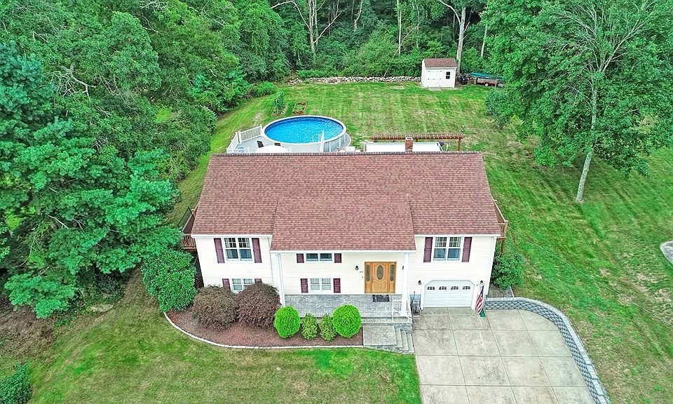 Must See raised ranch in Central Village! Not a typical floor plan - master suite off to one side and other bedrooms on other side. OPEN FLOOR PLAN and basement ready to finish with heat. Private backyard with pool, large wrap around trek deck. Home has new roof (1 month), new master bath (2016), heating system approx. 9 years young, three year young hot water tank, new carpet and tile (1 month), exterior paint (1 month). Home has replacement high end Anderson windows. Pool in full working order and liner is 2 years old.