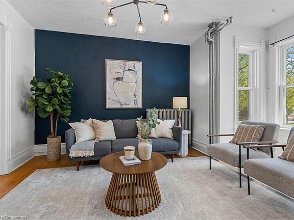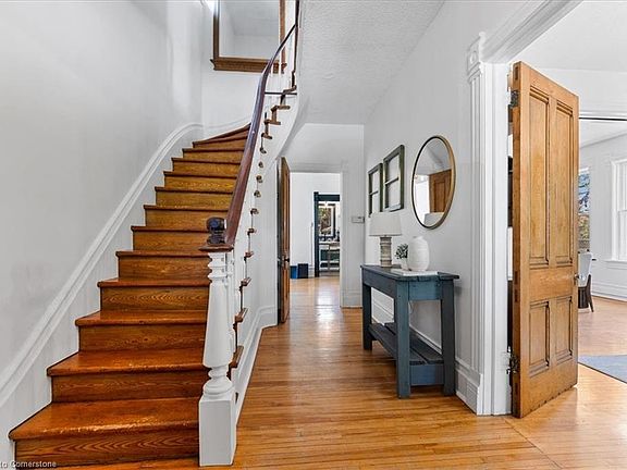 In Kitchener’s historic East Ward, noble century homes grace the leafy streets and neighbours exchange greetings from their grand front porches.. Renowned for its art walks, street festivals, and porch parties, this family-friendly neighbourhood exemplifies bygone charm and character. Within this enclave, 38 Burbacher Street stands as a unique architectural gem, built in the Italianate Style. This design, once popular for many of Kitchener’s finer 19th-century dwellings, is evident in the home's gabled, low-pitch roofline, decorative brackets, and tall, narrow windows adorned with rounded or arched mouldings. This stately home is filled with architectural features, including original trim, stained glass, hardwood pocket doors, and impressive 10-foot ceilings throughout. Unlike many neighbouring properties, 38 Brubacher is situated on a near double-wide lot and includes a detached garage, a rare find in the East Ward. Residents will appreciate the meticulous maintenance and thoughtful updates this home has undergone over the years. Offering over 2000 sq. ft. above grade, plus a finished basement, the residence features 4 bedrooms and 3 bathrooms, including a convenient main floor option. The home includes a large country-style eat-in kitchen, grand principal rooms, and abundant outdoor amenities, such as a covered porch, a walkout balcony, and a spacious deck in the backyard. Conveniently located near Brubacher Green Playground, walking distance of Downtown Kitchener and just a short drive to the expressway, this property offers exceptional value for the discerning buyer.