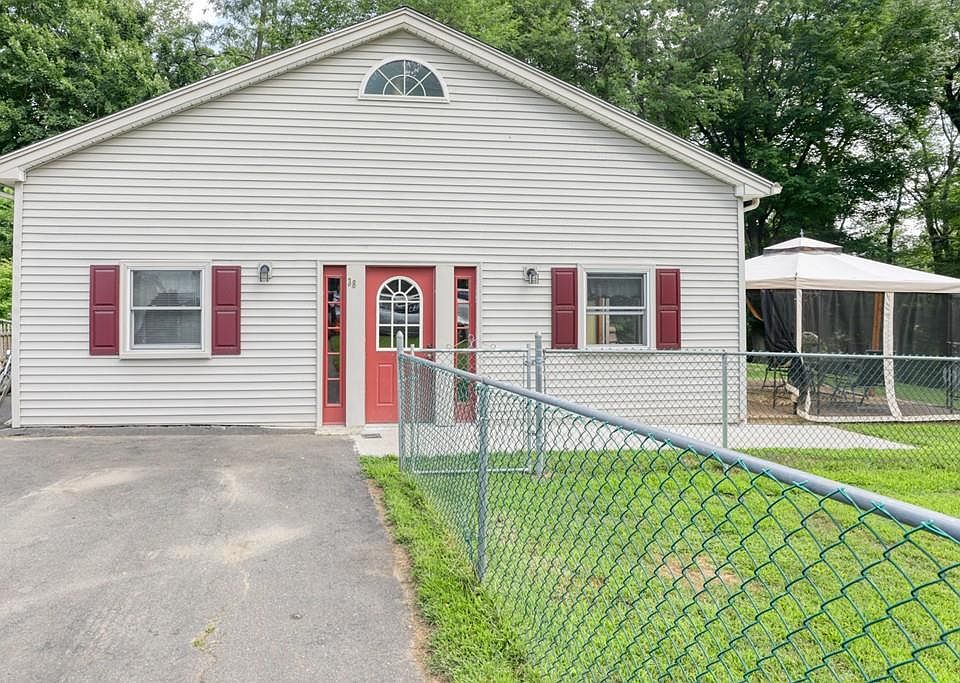OPEN HOUSE THURSDAY 5-6:30. Make this beautiful 3 bedroom, 1 bathroom ranch on a dead end street your new beginning! The first floor features a wide open floor plan with the large eat-in kitchen opening up to the spacious living/dining area. Polished hardwood floors shine throughout the entire main living space and into the two bedrooms. The downstairs only adds to the endless possibilities of this home, where you will find high ceilings, a finished family room, built in bar-perfect for entertaining, an additional bedroom, walk-in closet and laundry room. Head out the huge sliding glass doors from the kitchen to the deck area that overlooks the enormous backyard including a fire pit and private wooded side yard. The outdoor space also includes a fenced in area, perfect for keeping children and pets safe! Finishing out this amazing property is a newer roof, central air, vinyl siding and new windows.
