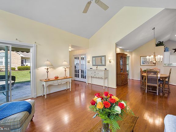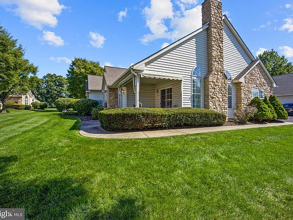 Welcome Home to 38 Cambridge Court in the highly sought-out Lionsgate 55+ Community. This beautiful carriage house is one of the rarely offered larger models and it won’t last long! 3 Large Bedrooms and 3 full Baths + den/office bonus room and much more! Beautiful hardwood floors throughout living room, dining room and kitchen areas with carpeted bedrooms and ceramic tiled bath floors. Upgraded kitchen cabinets with Corian countertops and custom backsplash. Bright and sunny main floor features an open concept with cathedral ceilings and gas fireplace surrounded by 2 extra large sunburst windows, as well as dining room area which flows into a fabulous full kitchen. Main floor also features bonus den/office room with double doors and laundry room/storage pantry. 2 large bedrooms are located on the 1st floor each have a private en-suite bath + sink/dressing room. The 1st floor Main bedroom suite includes a large walk-in closet + double sink vanity room with dressing area. The 2nd floor bedroom / private guest suite is huge with a full bathroom. Two car garage with lots of storage area and shelving in place. New roof installed June 2022. The Lionsgate Community is situated on 54 pristine acres with gardens, gazebos, community grounds and a paved walking path. The Lionsgate Clubhouse is complete with party and meeting facilities; as well as other amenities including an outdoor heated swimming pool, 2 tennis courts, pickleball and shuffleboard courts, as well as a work out center.