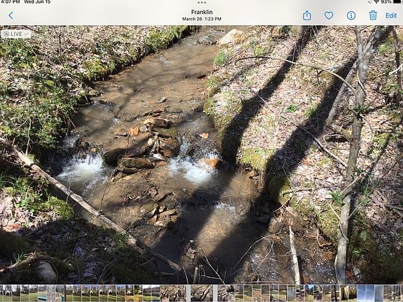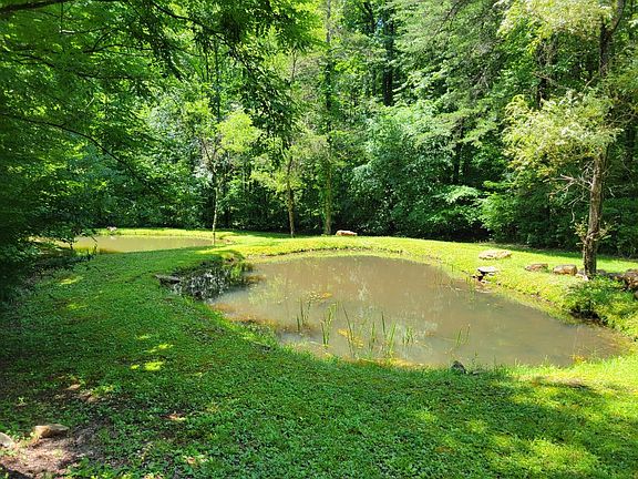 UNRESTRICTED 2.91 ACRES. North Fork Skeenah Creek, width 3-7 feet, fish ponds. UNMATCHED SETTING. Bring your RV, tiny home, horses. Private and secluded, large flat area. ONE LEVEL LIVING. New roof, windows, dishwasher, carpeting. Vaulted ceiling with skylight, ceiling fans, storage sheds, plus separate structure on poured concrete pad with electric. Minutes to downtown Franklin. NO HOA. Perfect for Airbnb and/or rental properties. Enjoy your property from deck and winter views of your ponds. YOUR OWN MAGICAL GETAWAY.