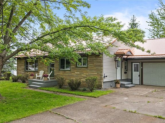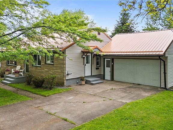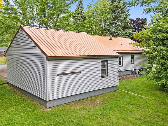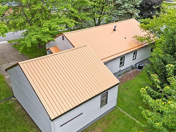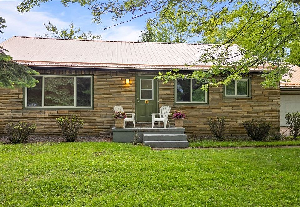 Discover this move-in-ready 3-bedroom, 2 full bath ranch located on a quiet dead-end street near SUNY Fredonia. This home has been extensively updated and features a modern kitchen with new KitchenAid stainless range and Bosch dishwasher set against beautiful granite countertops. Enjoy the added luxury of a brand-new copper metal roof and new gutters, complementing the stone exterior. The interior boasts fresh paint, new hardwood flooring, and newer windows. Enhancements include a double cedar-lined closet in the master suite and a full basement with upgraded systems such as a newer furnace with central air and a recently updated hot water tank. The property includes a spacious two-car garage with indoor automatic openers and a service door. The very large lawn provides ample outdoor space for activities and relaxation. Ideal for those seeking proximity to SUNY Fredonia or a peaceful village lifestyle.