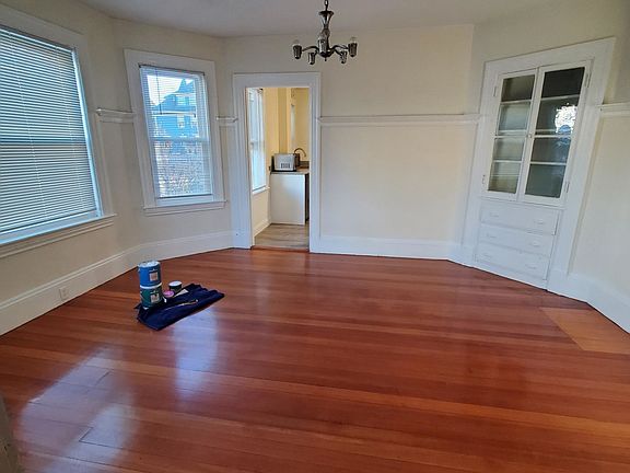 Renovated Kitchen and Bath in this 1st floor of multi-family home off Moody St. Eat in Kitchen, living/dining room, 2 SMALL bedrooms and 1.5 bath. Plus Laundry room off kitchen with washer/dryer included. All Hardwood Floors. Back porch overlooking nice yard. 1 Car parking. Available NOW (Ask for video!) Water and 1 car parking included