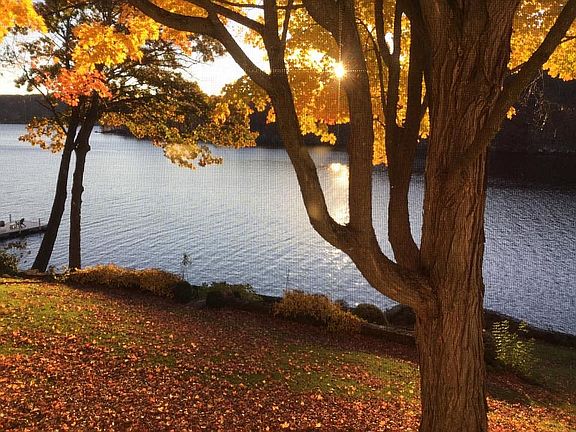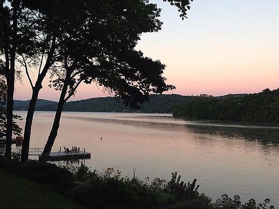 Beautiful 200ft waterfront view with boat dock, 2 car detached garage, newly remodeled, sunroom with sliding glass doors facing west and south with lake view, view of the lake from great room, master bedroom, sunroom, wet bar, and office, 18ft ceiling in great room, extra large stone fireplace, large insulated windows, storage shed. House is situated in a private community with the only golf course on Candlewood Lake, 4 tennis courts, a private marina, a beach, a summer day camp for children, and a clubhouse.