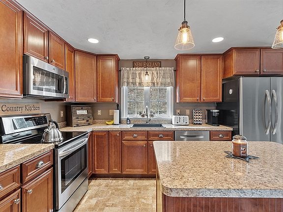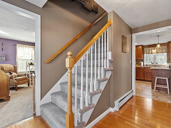 Meticulously maintained Blair built colonial awaits its next owner. Located on a coveted cut-de-sac in a neighborhood known for its wonderful community, this home stands out as a real value. Step inside and you are greeted with a sun-soaked floor plan that includes a lovely kitchen with an island and lots of storage, adjacent is the large dining room and oversized family room with vaulted ceiling and views of both the front and back of the home. There is a formal living room or home office on the first floor as well as a large laundry room and 1/2 bath. The second floor has new carpeting and is very spacious including 2 bedrooms and the primary with ensuite and walk in closet. The lower level features the 2 car garage as well as a large work room. This home offers beautiful seasonal views of Moulton Pond as well as mature perennials making the Spring a beautiful time to call this your new home!
