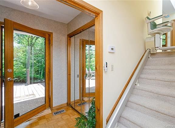 This HIDDEN WOODED RETREAT (+/- 1.6 ac site) appeals to those seeking PRIVACY with a transitional split-level home -- filled with light and natural beauty! This home has old brick, south-eastern exposure, and cathedral ceilings in the Great Room with a fireplace. The custom-built kitchen boasts the island glass stove top for all-round cooking/entertaining. The 3-bedrooms, 3-baths are energy efficient with Malta wood windows. The master suite boasts a sky-high half-round window, two vanity-dressing rooms with walk-in closets and a tub-shower/toilet room in between. The Lower Level is accessed by a door from the double car garage, the stairwell from Main and a door to the wooded deck outside. The large family room has a full bathroom and bonus room, which could be a 3rd bedroom... thus, potential guest quarters... if needed. Don't miss this amazing value just minutes from shopping, Weaverville / Asheville dining... recreation on the French Broad River and the Blue Ridge Parkway.