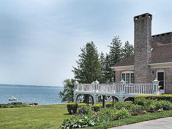 Completely unobstructed and totally cleared 210 feet of shore frontage on the East Passage of Narragansett Bay with a private beach and mooring. A dock is possible. This 1.8 acres is a very rare find since RI Coastal Resource Management Counsel today would never allow any "clear-cutting" of shorefront trees or plantings on a waterfront lot if it had not already been "grandfathered " in, and this one is! Sparkling Bay vistas pour in through virtually every window of this classic 5,550 square foot European-style glazed-brick residence offering six- bedrooms, and four and one-half baths. The home has plenty of wide open living spaces overlooking lovely gardens and a rolling lawn tumbling down to the water's edge. A delightful shorefront terrace ensures sensational waterfront vistas of the parade of sailboats and other boating activities passing by. Enjoy the mesmerizing sunrises and moonrises from the broad deck which wraps around all three sides of the home. Or just relax while listening to the sound of the waves crashing on the shore. This lovely home is a haven for outdoor entertaining. The captivating water views of Narragansett Bay and surrounding scenery of lush lawn, lovely plantings and gardens create a perfect setting from which to enjoy the endless seasonal coastal transformations and the pleasures of life by the sea.
