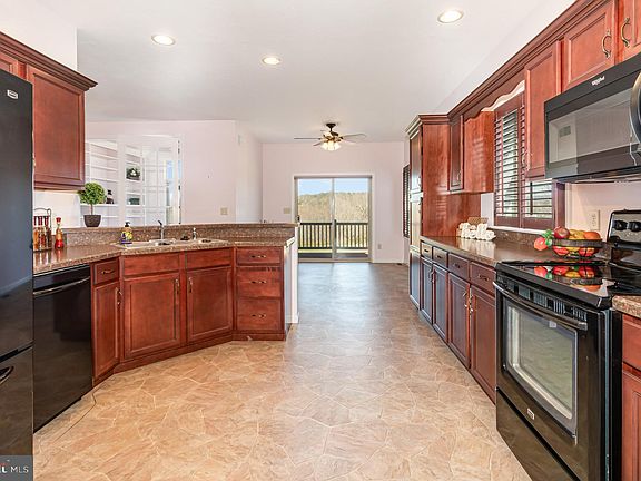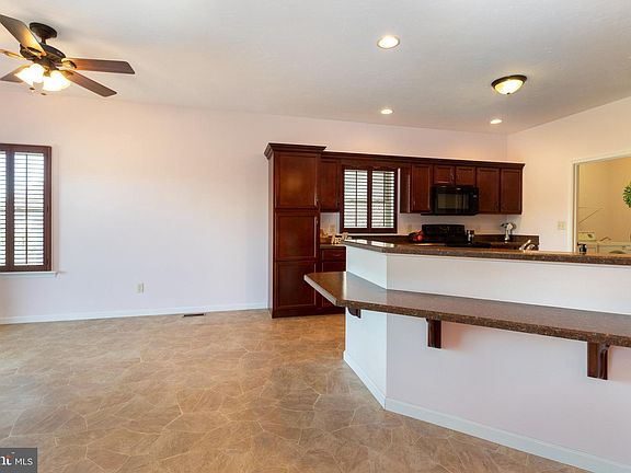 Welcome to your oasis in the heart of the desirable 55+ community of Country Manor! This impeccably maintained three-bedroom ranch home is carpet-free & boasts a neutral palette and open floor concept, perfect for effortless entertaining or relaxed daily living. Entertain in style in the gourmet kitchen with extended counter space, full height cherry cabinets, double sink with disposal & eating bar that seamlessly flows into the adjoining dining room with space for a large dining table. Adjacent living room showcases a floor to ceiling stone gas fireplace with mantle. Enjoy year-round comfort and beautiful views in the captivating sun room, adorned with a vaulted ceiling and offering ample built-in shelving for all your needs...this sun-drenched space is sure to become your favorite retreat! Spacious main floor primary bedroom is complete with plantation shutters, ceiling fan & ensuite bathroom featuring tile floor, walk-in shower, double cultured marble sinks and generously sized walk-in closet. Two additional main floor bedrooms share a full bath with tile floor, cultured marble vanity & convenient walk-in tub with shower wand. The finished basement, complete with built in shelving, a bathroom & additional patio spac, is ideal for accommodating guests or creating your own recreational haven. Extra storage space is insulated & has room for a workshop. Custom window coverings & ceiling fans throughout. Convenient main floor laundry room with wash sink, closets & washer/dryer that convey. Two car garage with additional storage. Rear gardens have the distinction of being certified by the National Wildlife Foundation. Community is gated & offers a clubhouse with exercise room, full kitchen for entertaining and community events, lending library, bingo space & more. Pond with gazebo & mountain views & walking paths. Whether savoring your morning coffee or unwinding with a glass of wine at sunset on one of the covered patios...THIS IS HOME! Don't miss your chance to call this remarkable residence your own – schedule a viewing today and discover the endless possibilities of living in a 55+ community!