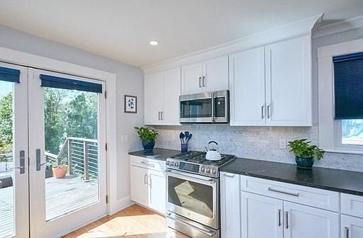 Inviting Craftsman style single family home w/ ample sunlight, views of hills & amazing sunsets in coveted West End location. Steps to Cunniff School. Expansive 2019 renovated kitchen w/ white Shaker cabinetry, honed Jet Mist Granite counters, Carrara marble backsplash, task lighting, stainless steel GE Cafe 6 burner dual fuel gas range, micro vent hood, KitchenAid DW & Kenmore Elite French door fridge. Interior features hardwood floors throughout (except office & baths), mantled gas fireplace, built-in bookcases, china cabinet, & decorative trim. 1st floor has living, dining, kitchen, screened-in porch, 1/2 bath, & office / laundry room. Potential to finish large attic & walk out basement w/ high ceiling (buyer to confirm w/ town). Lushly landscaped grounds w/ manicured back yard, pink dogwood, peach tree, roses, tulips & forsythia, 3 zone irrigation system, shed & attractive stone walls. Enjoy morning coffee & BBQs on the large, tiered exotic wood & copper rear deck off of kitchen.
