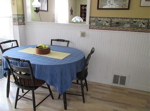 A quiet location on a low traffic dead end street or this cozy cape style home! This home has been well kept! All the windows have been replaced and it is vinyl sided. The kitchen was remodeled in 2005 with new cabinets, and countertops, and the appliances are newer. There are 2 bedrooms on the first level and 2 on the second. There are hardwood floors in the living room and bedrooms, two finished rooms in the basement with heat, and the bath was remodeled in 2014. There is a newer furnace with a humidifier (2010) and central air conditioning for those hot summer nights! The gutters are Leaf Guard gutters. There is a nice patio, a garage, and the driveway is wide enough for two cars. Enjoy the large yard which abuts a wooded area. A great home for those who like privacy!