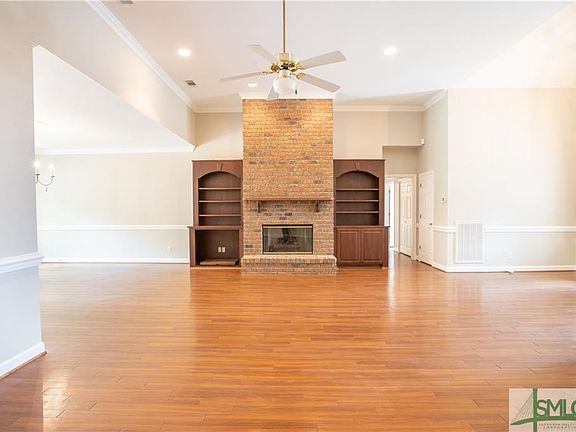 Beautiful all brick home located in Gated Waterfront community. This home boasts 4 BR or 3 BR and Bonus room, 3 full baths and is located across from deep water. This home is spacious with high ceilings, kitchen has quartz countertops, SS appliances with a gas stove. This home has been freshly updated new roof, new garage door installed, freshly painted, new carpet, and new quartz countertops installed in 2019. There is a well and irrigation system for landscape. The community offers a deep water dock, pool and tennis courts for homeowners and is conveniently located to shopping, expressways, Hunter Army Air Field and Ft. Stewart. A must see!!