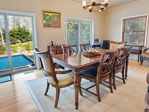 38 Cove Rd South, Southampton (Southampton Cove) Located in the highly desirable waterfront community of Southampton Cove, this spacious four bedroom +, four full bath home is perched up on .40 acre +/- of private, lush gardens. This home boasts an abundance of space, hardwood floors, living room with wood-burning fireplace, oversized dining room with views of pool and mature landscaped backyard. Open white kitchen, marble countertops with breakfast bar and stainless steel appliances. First level bedroom with full hall bath. Large den, or first level master suite with full bath, kitchenette, separate entrance to lower level and garage. Second level features the main master suite with all white bath and walk-in closet. Two additional bedrooms with full hall bath, an office, or bedroom with walkout balcony. New architectural asphalt shingle roof, large laundry room, attached garage and full size lower level with great storage space. Home is complete with central air conditioning. Unforgettable sunsets can be found nearby at the hidden gem, Towd Point Beach. Homeowners in the community can apply for a boat slip at the marina and enjoy the pavilion overlooking Fish Cove. Close to Southampton Village and all ocean beaches.