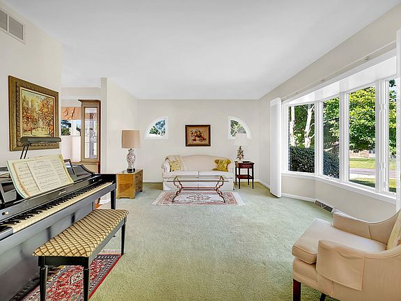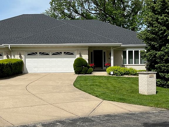 Nestled on a private circular drive with mature oak trees and a fieldstone stream, this exceptional 3-bedroom, 3-bath Oakwood Estates all-brick condominium townhome is a unique gem, offering a rare blend of convenience, space, elegance, and natural beauty. Inside this one-floor-living opportunity, a spacious foyer and separate living room set the tone for the generous floorplan that defines this home. An open-concept design seamlessly connects the kitchen flooded with natural light to the dining area and vaulted-ceiling family room, where a gas or wood fireplace and hardwood floors add a touch of modern sophistication. Adjacent to this inviting space, a four-season sunroom bathed in natural light offers a perfect spot to relax or entertain and provides easy access to the expansive outdoor patio with gas hookup for your BBQ. The landscaped backyard feels like a private retreat and is a haven for deer and other woodland creatures. The HOA-managed landscaping and snow removal (including driveway and front walk) allow you to enjoy the stunning surroundings without the burden of extra maintenance. Spacious ground floor primary bedroom suite includes walk-in closet, large bathroom with his/her sinks, linen closet, tub and separate walk-in shower. The second bedroom features a spacious closet and sits just opposite second bathroom with walk-in shower. A laundry room with built-in storage, a large 2 car garage with additional storage and a separate tradesman's entrance complete the ground floor. Completely redone in 2021, the lower level is a true entertainment hub, featuring a sprawling rec room with a wet bar, a second fireplace, expansive storage, and two versatile rooms perfect for home office, theater, yoga studio or hobby space. A third spacious bedroom with WIC and a full bath add privacy, comfort and convenience for guests or live-in help. Impeccably kept and well maintained, this home features: new heat exchangers in furnaces (Jan 2024), new humidifier (Jan 2022), water heater (Sept 2020), sun porch HVAC (Feb 2016), water softener (Aug 2016), roof (April 2015-HOA), and full security system with motion and sound detection. Located adjacent to Inwood golf course, and just moments from I-55, I-80 and shopping, this home combines convenience, elegance and vibrant surroundings. A must-see gem!