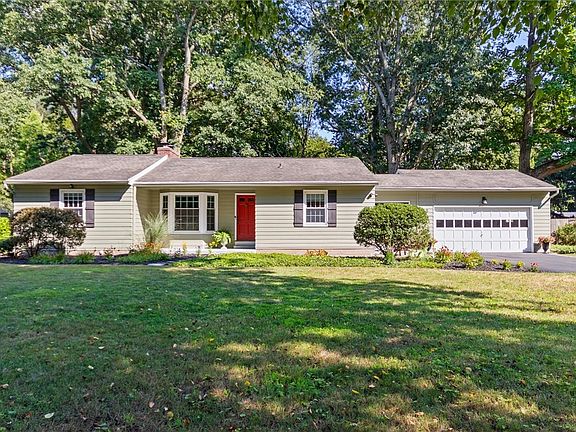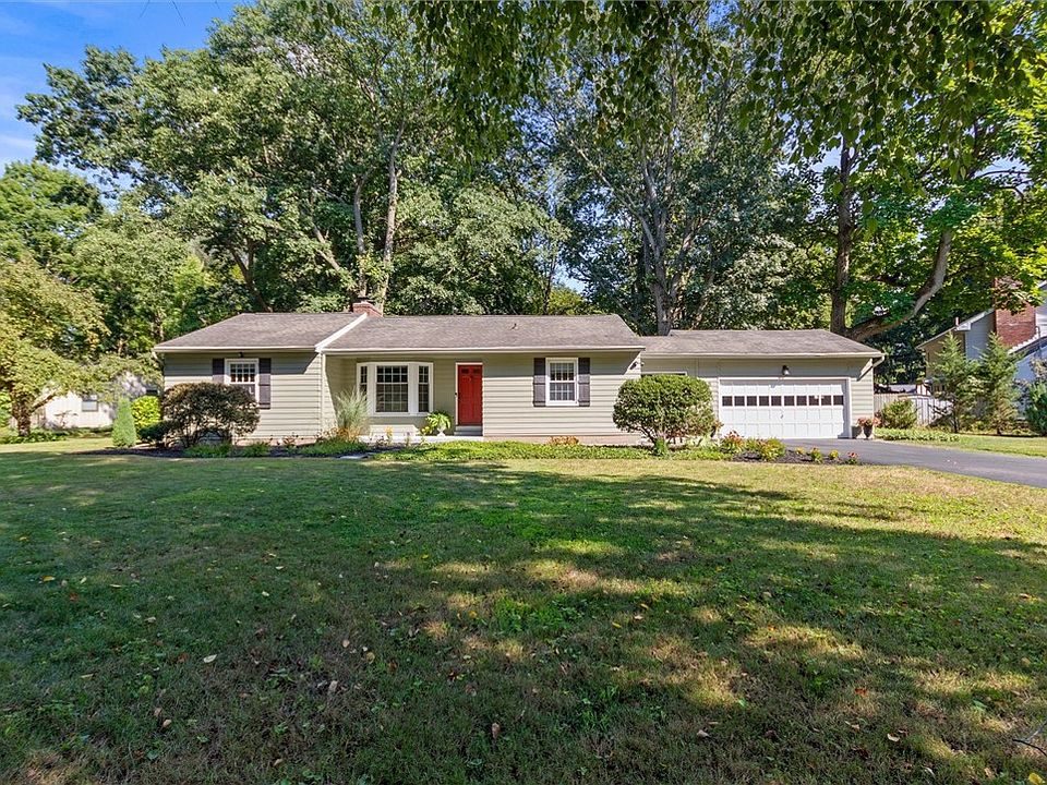 Welcome to the ranch you've dreamed of! There aren't enough adjectives to describe how nice, and meticulously well maintained this home is, nestled in this quiet Fairport neighborhood. Through the front door, the entry hall has a double closet, large powder room, and the home flows effortlessly through the large "L" shaped living areas, with a cozy fireplace, and patio access, to the spacious bedrooms, all with stunning hardwood floors. The bright, modern kitchen, is complete with updated appliances, granite countertops, an abundance of beautiful cabinetry, task and natural lighting. The converted breezway off the kitchen, is the perfect seasonal spot for morning coffee, reading and relaxing. The finished basement has it's own wood burning fireplace, beautiful woodwork, large separate workshop, storage room and the nicest basement laundry room I've ever seen! Relax in peaceful privacy in the backyard on the large stone patio, and enjoy the meditative sounds of the fountain, birds and wind in the mature trees. All utilities have been recently updated, and include new windows, a Rinnai tankless hot water system, Eaton whole home generator, Central AC, and furnace. Offers due 8/19, 4p