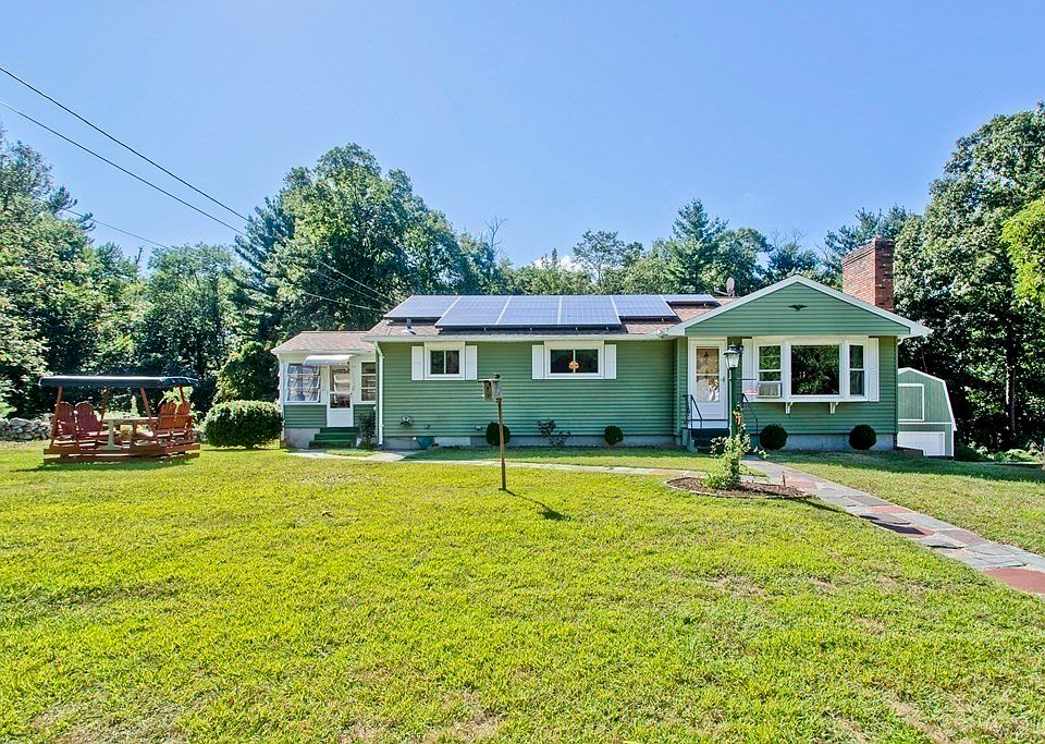 Welcoming ranch perched on a generous .77 acre partially wooded lot in the charming town of Monson. With a little sweat equity and updating this three bedroom, one full one 3/4 bath home will shine bright. Exceptional hardwood floors throughout. Magnificent fireplaces in both the living room and in the finished basement. Fabulous space within a roomy eat in kitchen. Three season porch off the kitchen adds charm and a light airy feel. In the basement you will find two finished rooms and the 3/4 bath. Outside features include a two car (front to back) heated garage with a large workshop or storage area above, a storage shed that was used as a chicken coop, and a storage tent that can remain. Solar panels are on a PPA plan. Property sold "AS IS" Highest and best offers due by 9/15 at 6:00pm