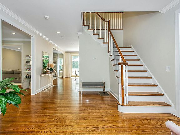 Situated on a lovely North Stamford cul de sac, this beautiful turn-key Colonial offers exceptional indoor/outdoor living options. Large windows throughout allow generous amounts of natural light, bringing the outdoors inside. The main level has an amazing open floor plan, including a newly designed kitchen featuring high-end Thermador & GE appliances and hand-painted Quemere tile backsplash. Ceasarstone quartz countertops and mitered edge island serve as the centerpiece in this entertainer's dream. Walk out the expansive sliding glass double doors to the large deck to dine al fresco or for a more formal gathering make use of the impressive high ceilinged dining room with raised paneling. Fireplaces in both the living room & family room offer spaces to relax after a long day of work or