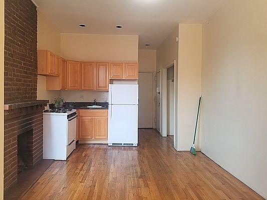 BIG NICE STUDIO W/ FIREPLACE NESTLED BETWEEN FORT GREENE AND DUMBO! Apartment details includes brick exposed wall w/ fireplace large bay windows throughout apt that lets in tons of natural light original restored hardwood floors full bath and 2 large closet alcove kitchen Laundry in building Woof and Meow is OK! Heat and hot water is included!