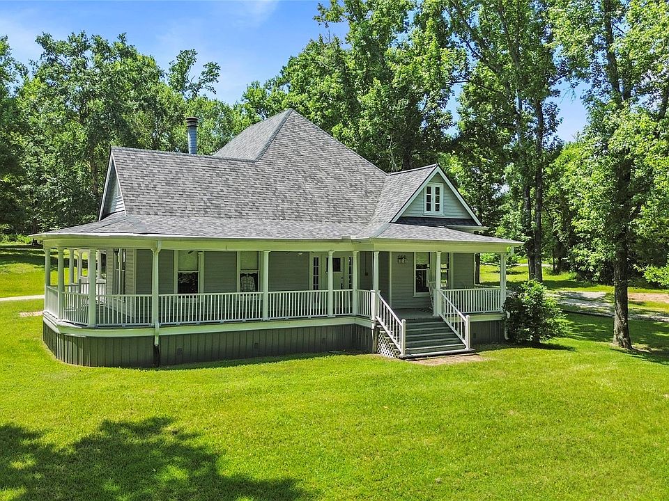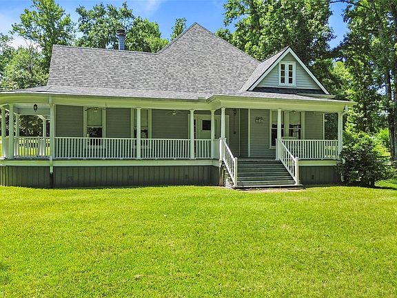 Live the country dream just minutes from shopping, dining, the hospital, and I-45 in this historic 1912 French Colonial home on 7 unrestricted acres in Huntsville, TX once home to the Bluebonnet Bed & Breakfast. Rich with character, it features extinct East Texas red oak shiplap, cherry red oak trim, French doors, original hardwood floors, and chandeliers imported from France. The kitchen and baths have been recently renovated, offering a vintage soaking tub, jacuzzi walk-in shower, and updated roof and HVAC. Enjoy a wrap-around porch, stocked pond, cedar walkway, gazebo, and peaceful pine-lined views. The upstairs includes a projector screen, hot tub, and French doors overlooking nature. Three additional acres with a separate driveway offer investment potential with preexisting hookups, plus two ready-to-build pads, a peach orchard, and an irrigated raised-bed garden. Less than a mile from city limits, this rare, unrestricted gem offers timeless beauty and endless opportunity.