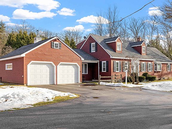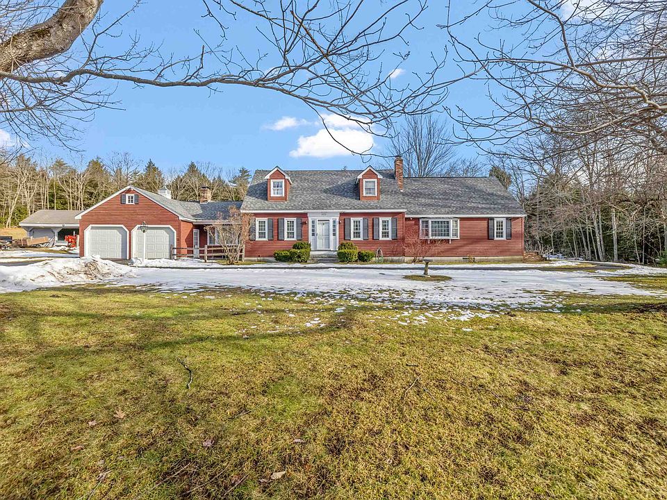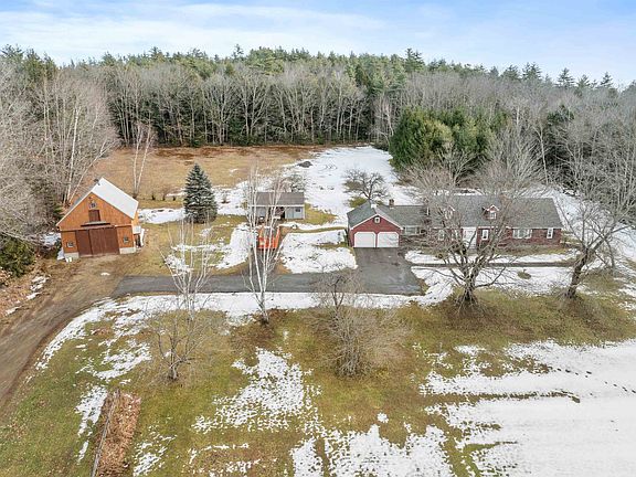 Welcome to 38 Dearborn Rd, Hill, NH - a picturesque 4-bdrm Cape blending charm, functionality, & versatility. A paved driveway curves into an attached 2-car garage, complemented by a carriage shed, barn, & a 1-bdrm apartment w/ a private entrance. The expansive front yard features ornamental trees & bushes, while the back fields edible landscaping includes four varieties of apple trees & blueberry bushes, ideal for hobby farming or relaxation amidst frequent wildlife visits. The attached garage includes additional storage & a generator, with direct access to a mud/laundry room designed for practicality. Inside, the living room offers a cozy brick fireplace & large window overlooking the vast front yard. The kitchen shines with ample cabinetry, an eat-in island, & a spacious dining room for gatherings. The main floor also features a full bath, a bedroom, & a versatile den-turned-office. Upstairs are 3 generously sized bdrm's & a full bath. The unfinished bsmt includes a wood-burning furnace & abundant workspace.This unique property offers endless opportunities: use the 4-bdrm house or 1-bdrm apt as a revenue stream, or space for a home-based business. Outdoor features garden space, apple trees for potential income, & space for animals or projects. Conveniently located within 20 minutes of Ragged Mountain, Newfound Lake, & I-93, with easy access to hiking, skiing, & Lakes Region attractions. Don’t miss the chance to experience this beautiful home, schedule your visit today.