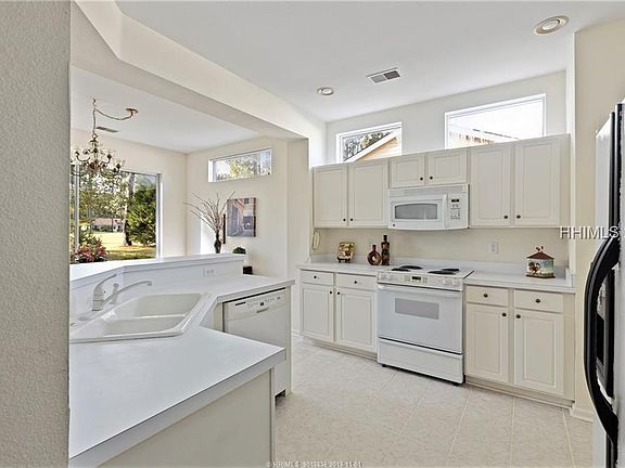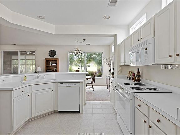 SUN CITY: Take advantage of Beaufort Cty taxes! No Stucco, composite siding exterior! Over-sized golf lot! Delightful 2Bed/2Bath CAMDEN/SHENANDOAH w/Carolina Rm & screened porch w/vinyl windows & views of 14th hole of Okatie Creek Golf Course (w/golf cart path on opposite side of course). Bright Kitchen w/transom windows allows light to flow into home & features pantry, breakfast bar & dedicated eating area w/bay window. Generously sized Owner Suite. Over-sized Guest Rm w/bay window can accommodate king bed. Versatile Carolina Rm can be used as craft/reading/TV Room. NEW roof installed 2016. Quiet cul-de-sac close to Town Square amenities.