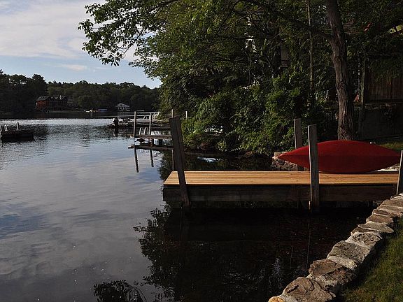 WATERFRONT! Come live the lake life on fully recreational & highly sought-after Lake Maspenock. This 3 bed, 2 bath lake house features an open layout first level w/ hardwood throughout. Gorgeous, updated eat-in kitchen w/ subway tile, stainless steel appliances, new fridge & granite countertops including granite island w/ seating for four. Floor-to-ceiling custom built-in bookshelves demarcate family/living area where massive wall of windows & slider face the lake. Slider leads to composite deck for taking in breathtaking sunset views. First floor also includes a bedroom & full bath. Lower level features 2 bedrooms w/ slider/French doors to patio & gently sloping lakeside backyard w/ direct waterfront access. Walk-in closet w/ built-in system & full bath w/ double vanity complete lower level. RARE 2 car garage! Conveniently located minutes from highway, award winning schools, walking/hiking trails, groceries, coffee & more. Come enjoy the tranquility & community of Lake Maspenock!