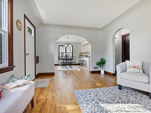 WOW what a house! Transformed from top to bottom, inside & out. Gorgeous stone home w/super-sized covered back patio overlooking backyard. Walk into a superbly redone hm w/all new windows, STUNNING redone hardwood floors on both floors, coved ceilings in living room, spacious dining room that opens to a BRAND NEW kitchen w/snack bar...tons of counter space. Upstairs has a great landing spot for home office/hobby area/game rm w/plenty of storage. Spacious BR w/2 closets, ideal for primary BR. 2 more great BRs w/so much character. Lg half bath is an added bonus. LL has tons of light & storage area. Garage w/loft. Updated mechanicals! 1st flr ldy hookups. You will fall in love ASAP. 48 hour binding.