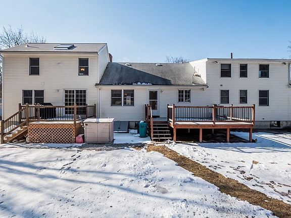 Stop the search, looking for space for your family & in-laws, here it is. This 4 bedroom 2 Full & 1 Half bathroom Cape is bigger than it looks & features a completely separate Au Pair Suite/Possible In-Law that offers 1 master bedroom w/ full bath, dining/kitchen area, living room w/ slider to private deck, 1/2 bath, full basement & separate heating/AC system & private side entrance. 1st floor offers 3 bedrooms, living room w/ gas fireplace, dining room all with gleaming hardwood floors, kitchen has new flooring & counter tops, 1 full bath & 1 half bath. Slider that leads to private deck. 2nd floor offers Master bedroom w/ private Full bath. Walk up attic offers possible additional living space. There is a game room in the partially finished basement. Property has been freshly painted. Nd space for the toys? Plenty of space in this (28x36) 6 car garage to store the boat, motorcycle, snowmobiles & convertible & it has w/ 200 amp service. Close to Bruce Freeman Rail Trail