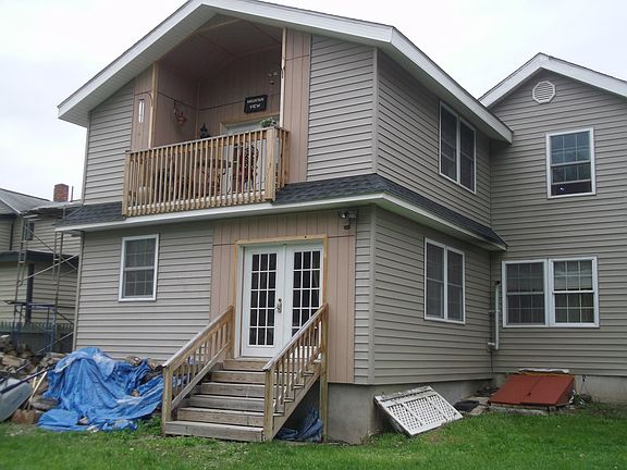 Totally remodeled village home on large level lot features a huge kitchen with custom cabinets and high end appliances, dining area with french doors to large yard. Entry foyer with cabinets for storage, formal dining room, adjoining living room with woodstove, first floor bath w/ shower. Three second floor bedrooms ... master bedroom has two large walk in closets and french doors to balcony and another full bath. Vinyl siding, newer windows and roof. Must be seen to be appreciated.! Priced to sell.