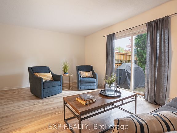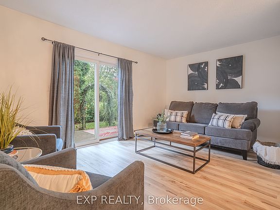 This 3-bedroom, 2-bath condo townhome perfectly blends comfort, convenience, and potential in a highly sought-after community. The main floor features updated vinyl flooring and a modernized kitchen, ideal for everyday living or entertaining. The home already has central air conditioning for year-round comfort, and the existing ductwork makes swapping the baseboard heating to a furnace simple and straightforward. Upstairs, you'll find three spacious bedrooms and a full bathroom, while the full unfinished basement offers excellent storage or a blank canvas for future finishing. Step outside to your private back deck, perfect for morning coffee or evening barbecues, overlooking mature trees that provide shade, privacy, and a peaceful setting. A fantastic opportunity for first-time buyers or anyone seeking a low-maintenance, move-in ready home with room to grow!