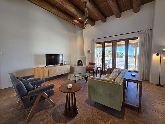 Welcome to 38 Encantado Loop in the desirable community of Eldorado in Santa Fe, with stunning mountain views. This fully furnished, charming 3 bedroom, 2 bathroom home offers a cozy and inviting atmosphere. The kitchen comes equipped with a refrigerator, dishwasher, and electric stove/oven. Enjoy the convenience of a washer/dryer in unit, and stay comfortable year-round with evaporative cooling and in-floor radiant heating. The house boasts tile flooring throughout, adding a touch of warmth and character. With a 2 car garage and an enclosed yard, there is plenty of space for storage and outdoor living. Utilities are included in rent up to $300.00 / month - any overage is the responsibility of the tenant. This furnished home is ready for you to move in and make it your own. Don't miss out on this wonderful opportunity! Brant Goodman, Qualifying Broker. Rental Fees & Policies Pet Policy $250 non-refundable pet administration fee $50/month per pet Early Lease Termination Fee equal to one month's rent plus gross receipts tax Tenant remains responsible for rent and utilities until the unit is re-rented Payment Policies Late Fee: 5% of monthly rent if payment is not received on time NSF Fee: $25 charge for returned payments Utilities Up to $300 a month included in rent for all utilities. Contact: Jacob Couch Landseer Management 613 Old Santa Fe Trail Santa Fe, NM 87505