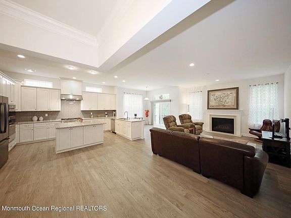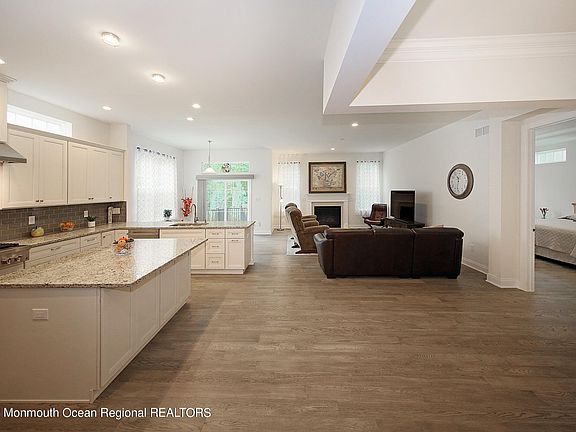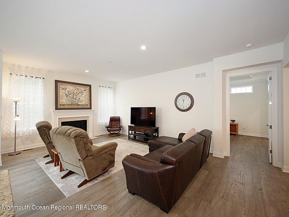 This exquisite, 2-year-old Binghamton model, at Enclave at Ocean, offers an open floor plan, 3 bedrooms, 2 full baths, dining room, basement, and paver patio that backs to woods. The granite kitchen has plentiful cabinets, ample counterspace, island, and SS Bosch & Jennair appliances. A breakfast area adjoins a large family room with gas fireplace. Features include 10' ceilings, hardwood flooring, crown moldings, large master walk-in closet, a whole-house 22KW Generac generator, laundry room, 24' extra deep 2-car garage and irrigation system. This 55+ community offers lawn care and snow removal, outdoor pool & hot tub, bocce, and clubhouse with gym. Located close to NJ beaches, Parkway, Rt 18, NJ Transit, dining and shopping. For more information, see additional documents