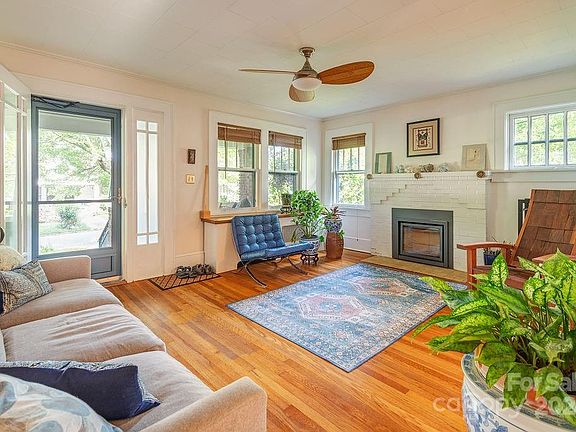 If you've been waiting on the perfect West Asheville home, this is it. Gorgeously cared for home in the heart of it all. This 1924 classic bungalow features a perfect location on a quiet street, just off Haywood Rd, steps to the Tuesday tailgate market, with shops, restaurants, bars, grocery just around the corner. Hardwood floors and a cozy wood burning fireplace greet you in the ample living room as you enter off the generous covered front porch. 2 large bedrooms and 2 full baths on the main, plus an upstairs suite with bedroom, living room and half bath, not counted in sf due to ceiling height just below 7', give this beautiful home options for your lifestyle. Enjoy heated floors in the beautifully renovated bathroom. Relax or entertain on the stone patio in the fenced and beautifully landscaped back yard. This home features solar panels for responsible energy production and low power bills. Make this one home today.