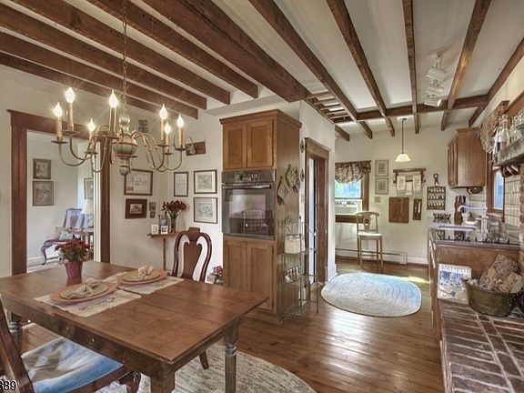Step back in time with this enchanting 2-bedroom home, perfectly blending historic character with warm, inviting spaces. Tucked away in the storybook setting of Pottersville, "Fairmount House captures the feel of a cozy bed and breakfast with its rustic wood beams, charming loft, and timeless details. Inside, sunlit rooms highlight the character of this home, while the loft and den add flexible space for a reading nook, studio, or home office. Outside, the beauty continues with lovely garden beds, a vibrant zinnia garden, and a welcoming side stone patio ideal for outdoor dining or quiet morning coffee. Beyond the backyard, a scenic hayfield creates a picturesque backdrop and a sense of peaceful privacy. Additional features include a detached, oversized one-car garage offering both parking and extra storage. Whether you are seeking a weekend retreat or a year-round residence, this home offers a rare opportunity to enjoy the historic charm and tranquility of Pottersville living. Walking distance to village of Pottersville and Hacklebarney State Park, Fairmount House is minutes from shopping, trains, highways to NYC. A truly special setting to call home.