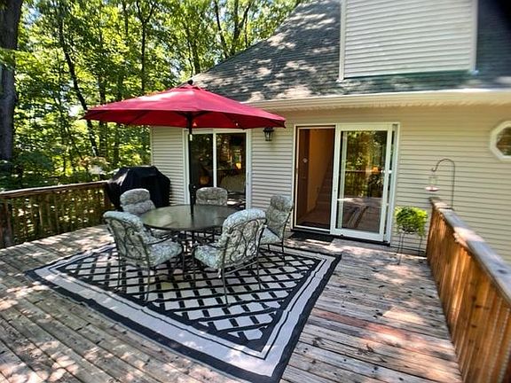 WOW! This home is utter perfection. No detail was overlooked. Huge sun drenched living room features a heat-a-lator fireplace for those cool nights at home. The modern kitchen has a breakfast bar and ample table space. Bedrooms on both levels with the main suite upstairs. Walk onto the 20x18 back deck and marvel at the beauty of the woods. Keep an eye out for deer, turkeys and hummingbirds as all are abundant here. The deep walkout basement has many windows for natural light so it's easily finished off into additional bedrooms and living space, with sliding door to the yard. All appliances are included and sellers will consider a turn key sale (furnishings). Two lots here and no immediate neighbors = serene privacy. Come enjoy Lake Thunderbird's boating, fishing, tubing, swimming pool and beach. Once here you will not want to leave. This will not last long.