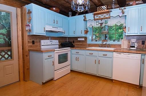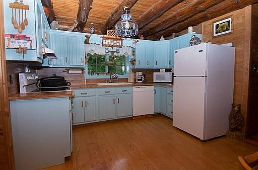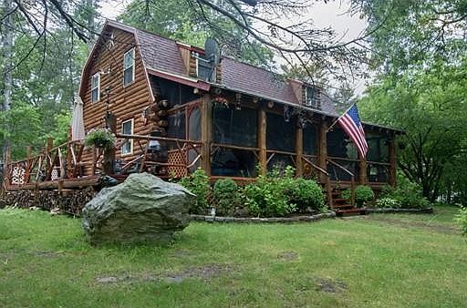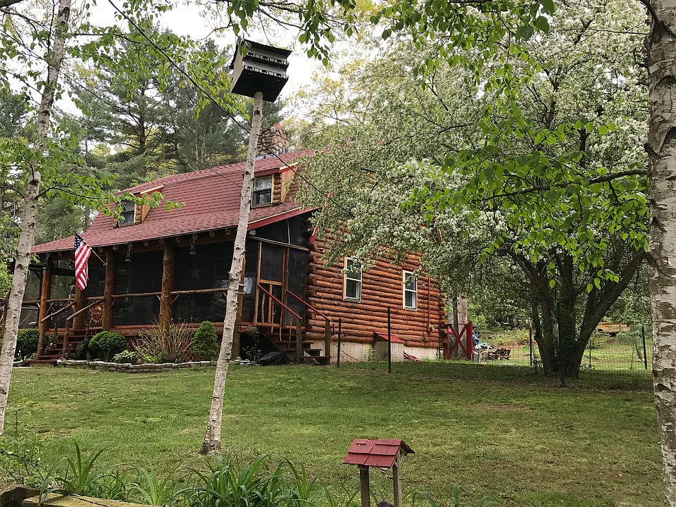 Country Living at its finest! A log cabin on private lot with a water view! Who could ask for more? The living room is the entire width of the home and the kitchen is open to the roomy dining area. 2 spacious bedrooms and a full bath upstairs. The Master opens to the downstairs loft-style. Bonus space downstairs in finished basement has many possibilities. A long driveway leads to a poured concrete slab, ideal to finish with a carport or garage. Lot is extended behind shed (which has electric). Walking distance to recreational water. Log cabins are naturally very efficient and house also has insulation in attic and basement so you will be warm and cozy all winter long. See design plan in photos for 3rd bedroom. Easy to show! RANGE PRICED--SELLERS WILL ENTERTAIN OFFERS BETWEEN $320,000-$340,000.