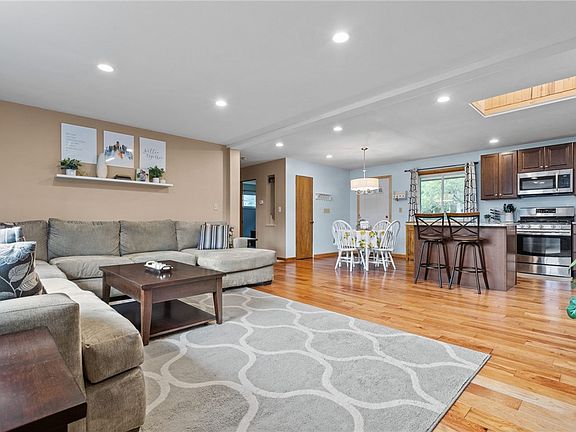 Adorable, move-in ready 3 bedroom 2 bathroom Ranch in Forest Hills! Beautiful hard surface floors welcome you and your guest into an open floor concept into the kitchen, living room, and dining area. With a skylight and new windows installed in 2021 you'll find ample natural light throughout the house. On the main floor you will find two generous size bedrooms with a completely updated bathroom Walk down to a basement that is huge and completely finished with a bar area! Perfect for entertaining. There is a third bedroom in the basement and around the corner a full bathroom and huge laundry room. The home is much larger than and it is a MUST see! (new windows 2021, new ac 2020, new water heater 2021!)