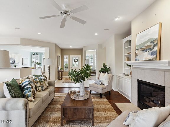 2BR, 2B Hatteras with pretty pavers, composite plank, and gorgeous lagoon view! Welcoming foyer leads to cozy open living room with hardwood floors, fireplace, built-ins & dining area. Cook's kitchen features granite countertops, SS appliances, eat-in area by bay window, plus lots of prep space, pull-outs, and storage. Additional built-in storage in office/den. Spacious owner's suite has updated bathroom & closet system.