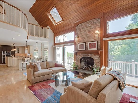 On a quiet cul-de-sac, situated on 3.5 acres, this lovely, light-filled Cape Cod offers amazing views! A custom-built entertaining home with unique features including a stained glass window and round walls.  The spacious open floor plan boasts a granite kitchen with gas cooktop, breakfast bar and nook; freshly painted great room with fireplace, built-in cabinets, wet bar and slider to the expansive deck; comfortable family room; formal dining room; music room with crown molding; 3 season screened-in porch, mud room, laundry room and attached two-car garage that complete the main level. The upper level is comprised of a sizable, open loft space; a grand master bedroom suite with walk-in closet; master bath with Jacuzzi tub and stall shower; three guest bedrooms and a full bath. The walk-out lower level features a recreation room with sauna and full bath along with a wine cellar. Mechanical features include a generator and central air. A circular, paved driveway and stonewalls accent this beautiful property. Nicely updated and maintained. Easy access to Route 4 and beyond for commuting.