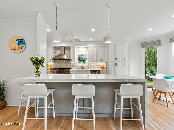 Prepare to be wowed by this just completed full home renovation! This exceptionally beautiful 4 bedroom, 3.1 bath, better than new Colonial has been reimagined and thoughtfully redesigned for today's buyer. The move-in ready, light-filled, exquisite home is just what you've been looking for. Fall in love with the brand new chef's kitchen and butler's pantry with custom cabinetry, gorgeous quartz countertops, and high end stainless steel appliances, as well as the stylishly, redesigned bathrooms; including the spa-like primary bath with custom vanity, quartz countertop, freestanding stone tub, glass enclosed shower, separate toilet room, and radiant heated floors. This incredible home features a new walk-out lower level with a glass door leading to the side yard. It has been finished to include a new 4th bedroom with a large window, a brand new full bathroom, a work from home office, a playroom/second family room, and plenty of storage space. This absolute gem has two wood burning fireplaces, redone hardwood floors throughout, a new lighting plan, a second floor laundry, and all new window treatments. Double glass doors lead to the expansive deck and fully fenced backyard perfect for entertaining family and friends. All this, plus the added advantage of being able to go to the town of Old Greenwich with its exciting shops and restaurants, the train, Binney Park, the OG library, and the new Eastern Greenwich Civic Center. It's also a short distance to Tod's Point Beach! See Special Features Sheet with a list of all of the home improvements. This home is a must see!