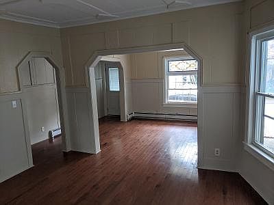 3 bed 1 bath two story single family home with driveway has gas hot water baseboard heat, new 200 amp electrical service, full basement with washer and dryer hookup, front and back porches and small fenced in back yard. Modern kitchen has built in microwave and dishwasher electric stove and refrigerator. New carpeting in bedrooms, living room and dining room have hardwood floors, kitchen and bath are tile. Renter responsible for all utilities, trash, lawn and snow removal. No smoking, no pets, $40 pp application fee, first last and security with background check. Please respond with your contact information and availability.