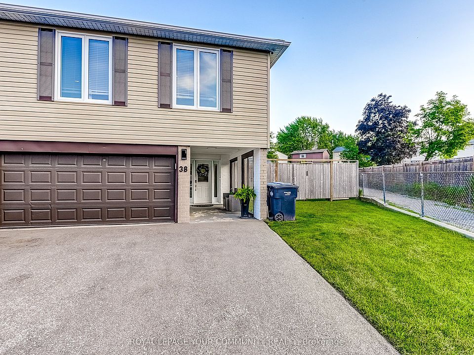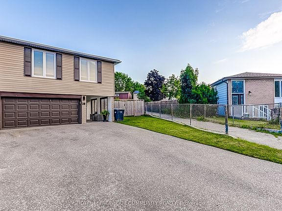 Welcome to 38 Gainsborough Rd in the Sought-After "G" Section! Tucked away on a quiet, family-friendly street, this beautifully updated 3 bedroom, 2 bathroom semi-detached gem is situated on a rare, oversized pie-shaped lot backing directly onto a scenic park- offering privacy, serenity, and unbeatable green space. Step inside to a bright, open-concept main floor showcasing smooth ceilings, modern pot lights, in-ceiling speakers, elegant crown moulding, and laminate flooring. The Kitchen offers modern endless cabinetry, stainless steel appliances that seamlessly connects to a spacious eating area-large enough to accommodate a full dining table-and flows into the inviting large open concept living room. Patio door leads to the private backyard deck, perfect for outdoor dining, entertaining, or simply unwinding. Upstairs, you'll find three generously sized bedrooms and a fully renovated spa-like 4-piece bathroom, complete with heated floors, a luxurious soaker tub with jets, a rain head shower system, linear lighting, and a recessed light bar for a true retreat experience. The finished basement expands your living space with a spacious recreation room, a modern 3-piece bath, a laundry area, and endless potential for a home office, playroom or more! This home sits on an oversized pie shaped lot backing onto a park (no neighbours behind) and is steps from top-rated schools, a community rec centre, and walking trails. It's the perfect blend of indoor comfort and outdoor space in a highly desirable location. Move-in ready and loaded with upgrades, this home is ideal for growing families, downsizers, or anyone looking for peaceful living without sacrificing convenience. Don't miss your chance to call this exceptional property home!