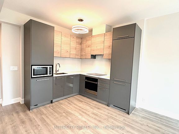 Pavilia Condos by Times Group Corporation Located at the prestigious intersection of Highway 7 and Bayview Avenue. This luxury building offers incredible convenience in a prime Markham location next to Richmond Hill. This bright and spacious 1+1 bedroom unit with view of Downtown Toronto skyline. Featuring 9' ceiling and a functional open-concept layout. The den, complete with a sliding frosted glass door, can easily serve as a second bedroom or private office. Enjoy modern finishes throughout, including laminate flooring, upgraded quartz kitchen countertop and matching backsplash, upgraded quartz countertop on bathroom vanity. Conveniently situated with Viva Transit at your doorstep and just minutes from Highways 407 and 404. Surrounded by restaurants, banks, and shopping plazas, just steps to everything you need. Includes 1 parking space and 1 locker.
