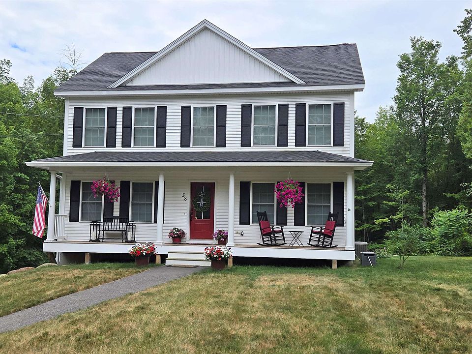 Welcome to 38 General Knox Road Tucked away off Route 114 and set on a private 2.88-acre lot, this beautiful custom-built home offers the perfect blend of comfort, style, and tranquility. Step inside to an open-concept first floor filled with natural light, thanks to an abundance of windows. The chef’s kitchen features granite countertops, a subway tile backsplash, double sink and pantry—truly a cook’s dream. Enjoy casual meals in the eat-in kitchen or host gatherings in the formal dining room.The expansive living room provides plenty of space for entertaining friends and family. A first-floor half bath with laundry adds convenience. Step out onto the back deck to enjoy your peaceful surroundings, swim in the 28' round 4.5 deep DoughBoy Pool, or gather around your firepit. Georgian Farmers Porch welcomes your guests or unwind on the front porch while watching the sunset. Upstairs, the spacious primary suite features a coffered-style ceiling, built-in desk area, walk-in closet, and a private bath. Two additional bedrooms share a full bath on the second floor. Additional features include a slider walk-out basement, central air conditioning, and a generator hookup. This home is move-in ready—and you can be settled in before the new school year begins!