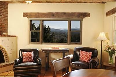 A rare & special home, sited on a hill top overlooking Tesuque w/stellar views of the Sangre de Cristos & Badlands. This exceptional home offers authentic design, structural integrity w/contemp. amenities. Beams & planks from a Madrid mine were used as ceiling treatments, kitchen & bathrooms were recently updated in conforming style. Studio/Den & office were added in '90. Contemplative outdoor spaces, include a decked hot tub. Exquisite organic gardens are enjoyed by this 7 home compound.