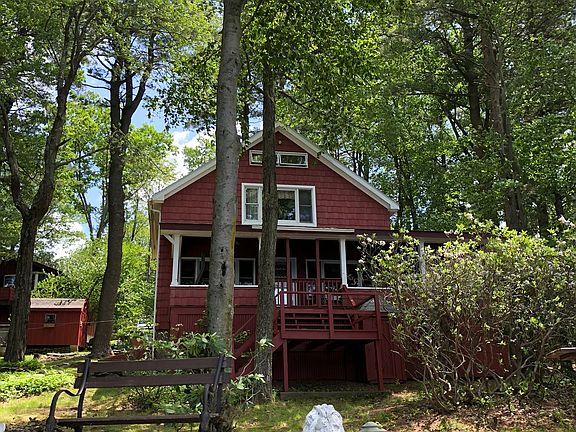 Welcome to THE Lake House! Storybook setting and desirable location in Southern Sullivan County Catskills will not disappoint! Extremely large frontage on Wanaksink Lake allows for privacy and serenity while you enjoy this stunning home and property. The "bunk house" (insulated) adds extra room for guests or studio space for artists, etc., as well as a one car garage. The property gently slopes to the lake with fantastic access and views. The dock is ample for all your boats and has plenty of entertainment space. Natural landscaping surrounds you. Adorable cottage has retained that quintessential "lake-house" feel with modern upgrades, custom moldings, wood floors, and quaint, inviting touches. Terrific wraparound covered porch offers sweeping lake views and dock area is sure to be a regular hangout. Clubhouse, sandy beach, tennis, playground and entertainment is exclusive to the community. Rock Hill is an easy commute to NYC and everything Sullivan and Orange County have to offer!