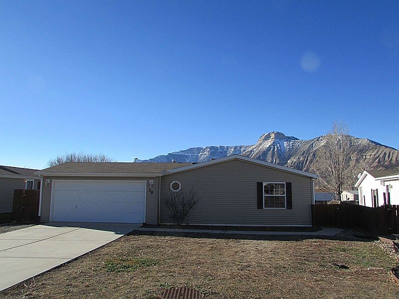 This manufactured home is budget-friendly and available for immediate possession. Vaulted ceilings, large skylights and an open floorplan featuring a formal living area and a family room make this home feel so spacious and bright. The well planned kitchen with breakfast bar and easy access to the pergola covered deck make meal time and BBQ?s easy. The split bedroom plan offers privacy to the master suite which features a walk-in closet, raised vanity a garden soaker tub and views of the Battlement peaks. This lot is located in a quiet cul-de-sac and features a sprinkler system and raised garden beds. Do not miss the opportunity to secure this property - a very affordable investment in the amenity filled Battlement Mesa Community!